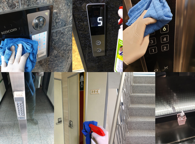 종합관리건물 - 승강기 내외부, 승강기 손잡이 및 버튼 일체, 세대 도어락, 현관 로비폰 버튼, 계단 난간대